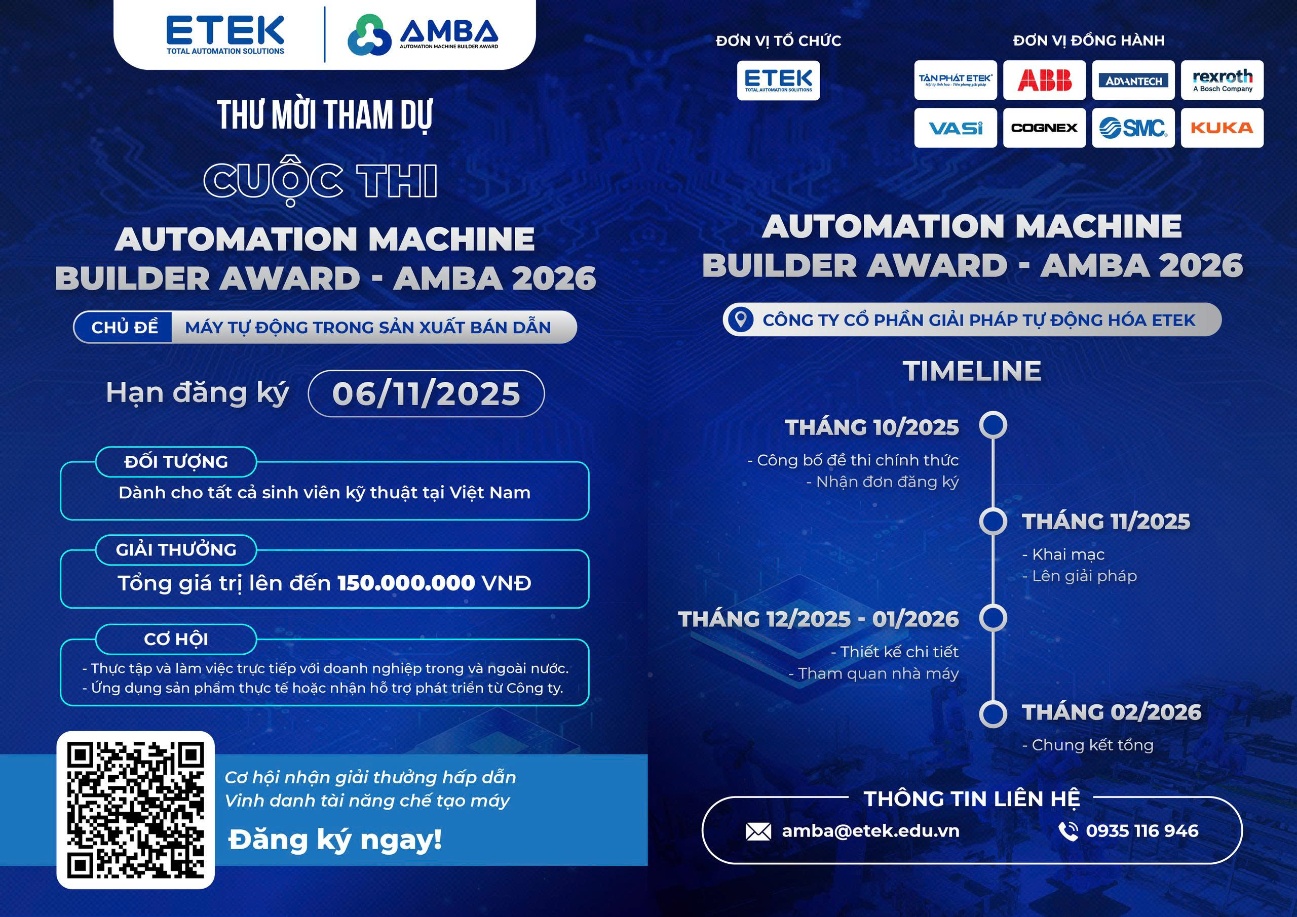 Sau thành công của mùa đầu tiên, Cuộc thi Thiết Kế Máy Tự Động Hóa Công Nghiệp – Automation Machine Builder Award (AMBA) Mùa 2 đã chính thức quay trở lại với chủ đề “Máy tự động trong sản xuất bán dẫn”. Đây là sân chơi học thuật quy mô toàn quốc dành cho sinh viên kỹ thuật, nơi ý tưởng sáng tạo được thử thách, phát triển và tiến gần hơn với thực tế sản xuất.