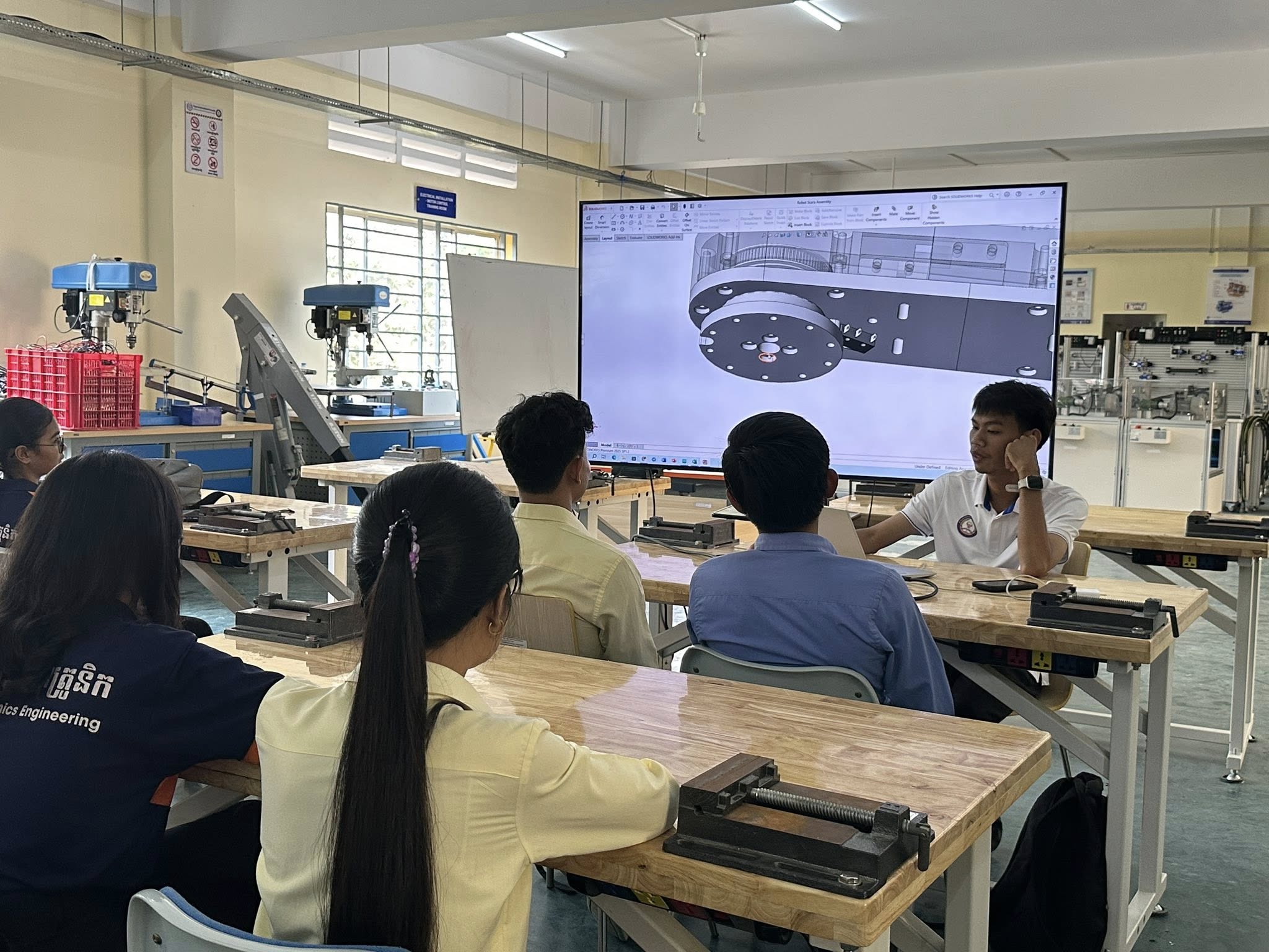 At the Department of Electrical Engineering – RPITSSR (Cambodia), Mechatronics students have the opportunity to study and practice directly on ETEK’s training equipment under the S4C collaboration project. This marks an important milestone in expanding the reach of Vietnam’s “Made in Vietnam” automation training solutions across the region.